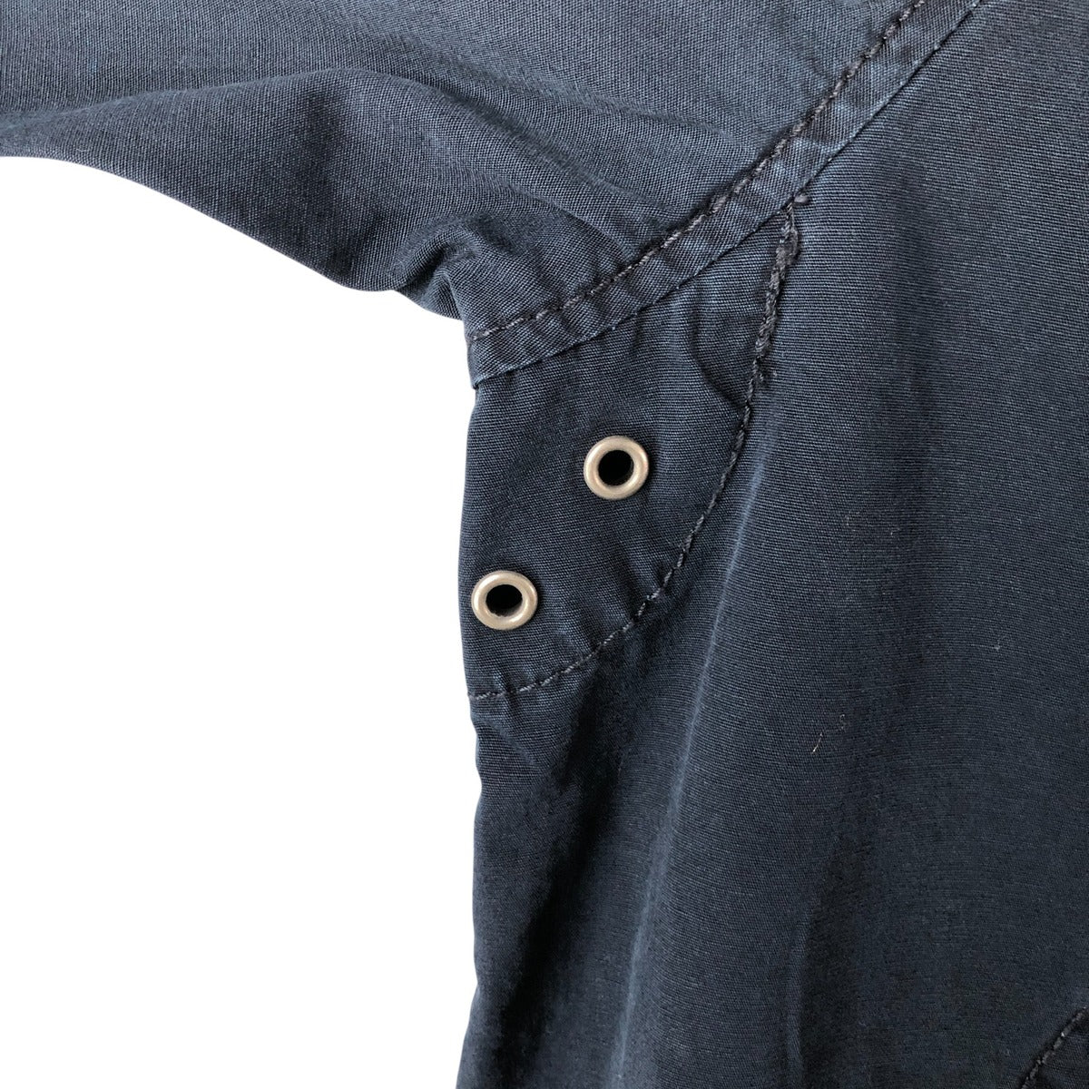 -Back, thread pulling on right arm, left sleeve button replaced