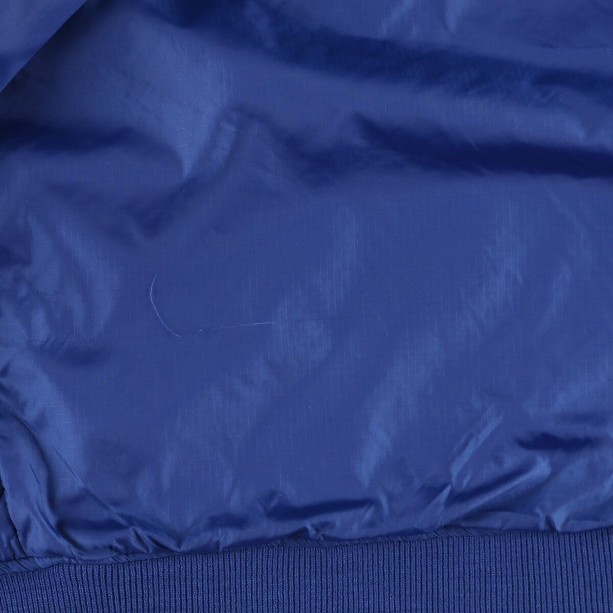 -Stain on front, both sleeves, left arm, left abdomen, inside both abdomen pockets, collar. Ribbed slack around collar. Thread pull on right abdomen.