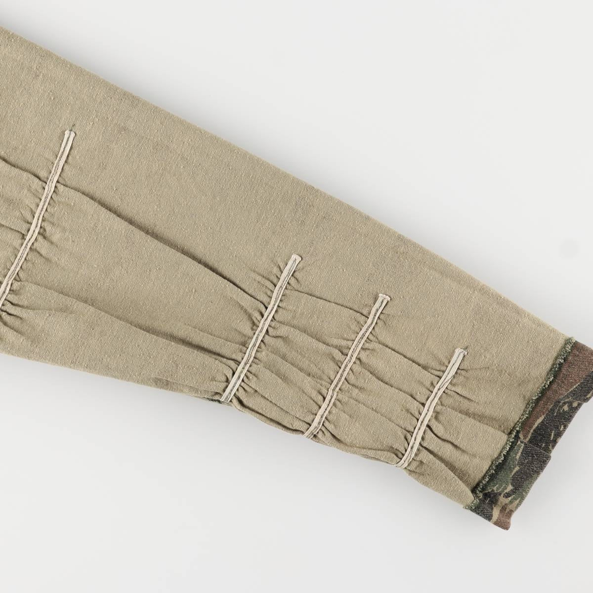 - Front and right sleeve cuff (inside) torn, repair marks on left abdominal pocket tag, 4th button replaced