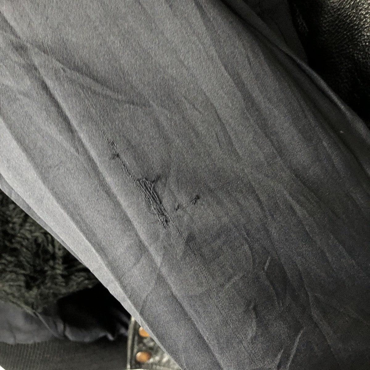 - Repair marks on the front and inside the left sleeve