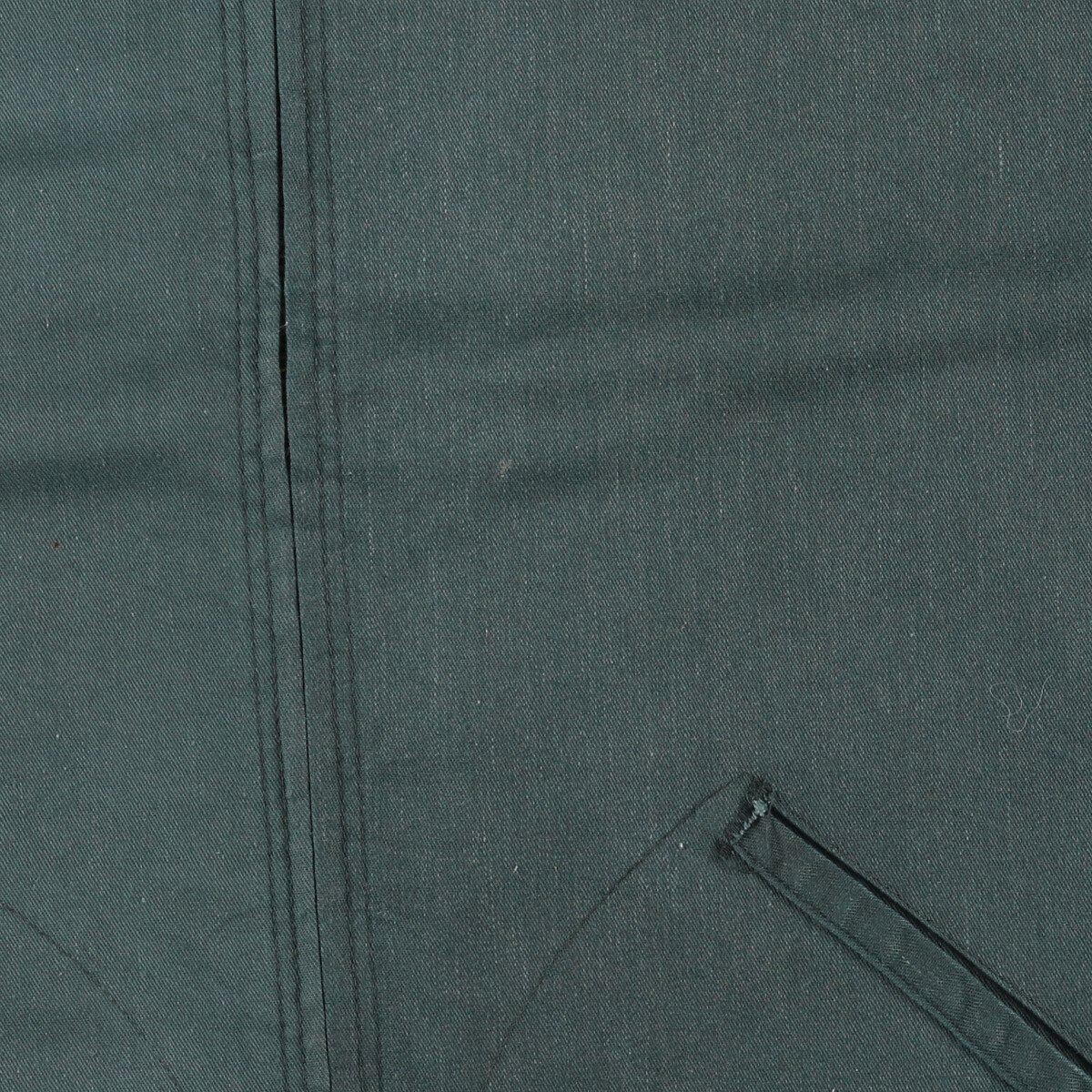 -Inside, whole thread missing, stain on left hem