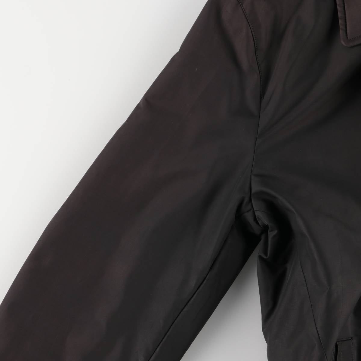 - Rubbing on the front, left side, both sleeves and right thigh. Stain on the right sleeve.