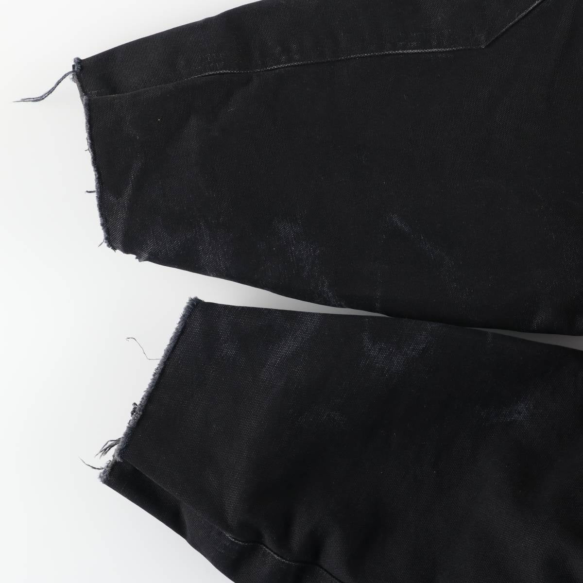-Stain on the collar and right back; wear on the collar, both arms and hem; tears at the ends of both sleeves.