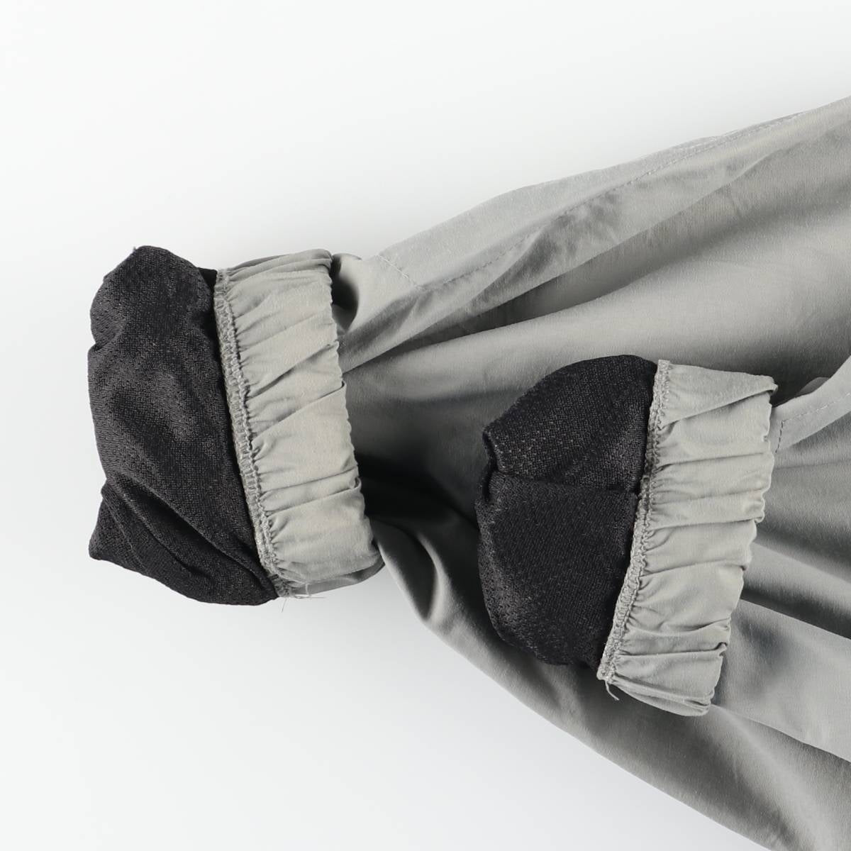 -Stain on the front, left and right collars, right shoulder, left abdomen, left arm, and left and right sleeve ends. Fluffing inside the left and right abdominal pockets.