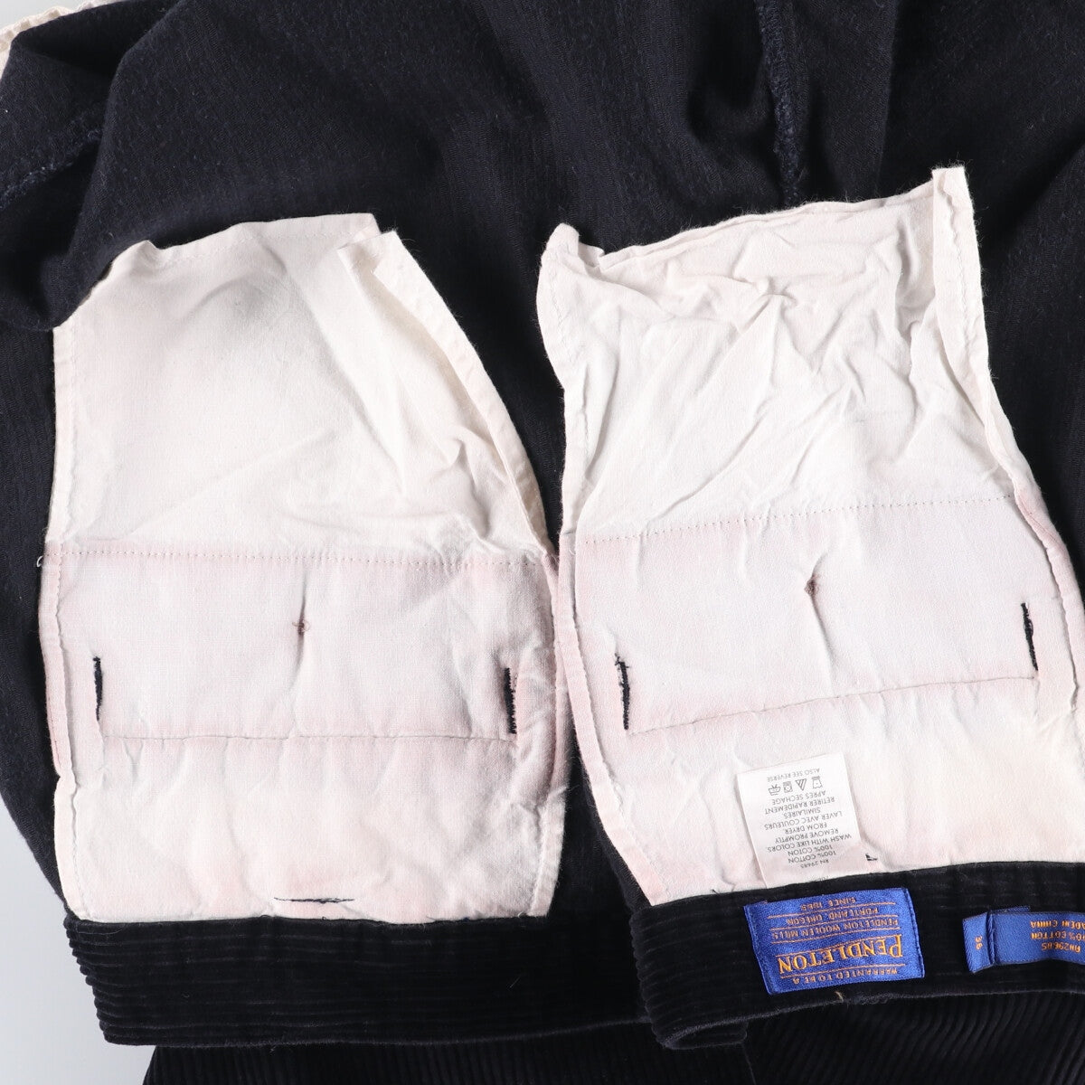 - Stain on the inside of both front and back pockets