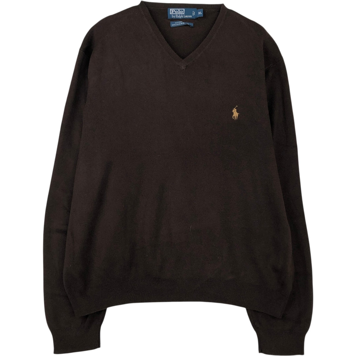 Ralph Lauren POLO by Ralph Lauren V-neck Pima cotton knit sweater, men's size XL Pima Cotton brown type Vintage Second Hand