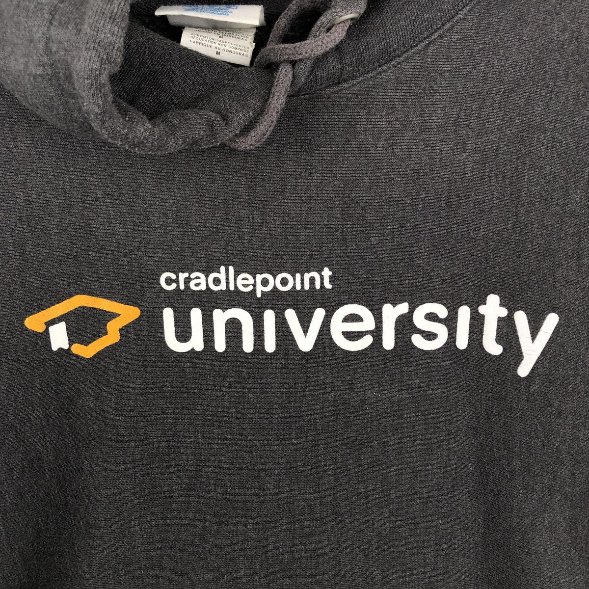 - Front hood drawstring, stain on both sleeve ends.