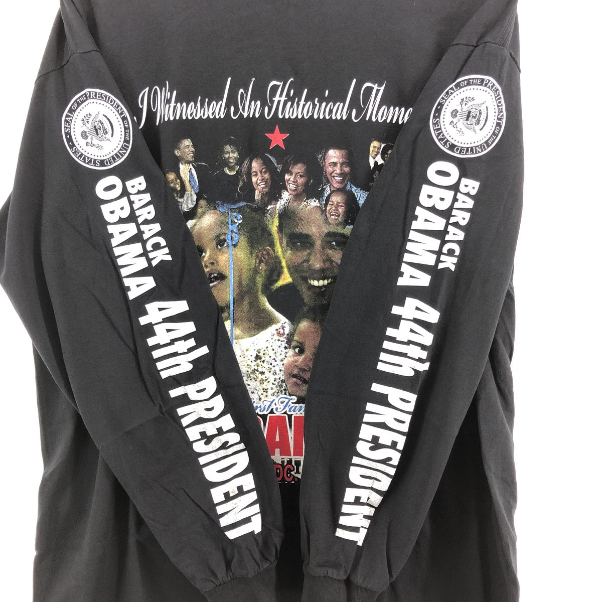 - Stain on the front and right sleeve