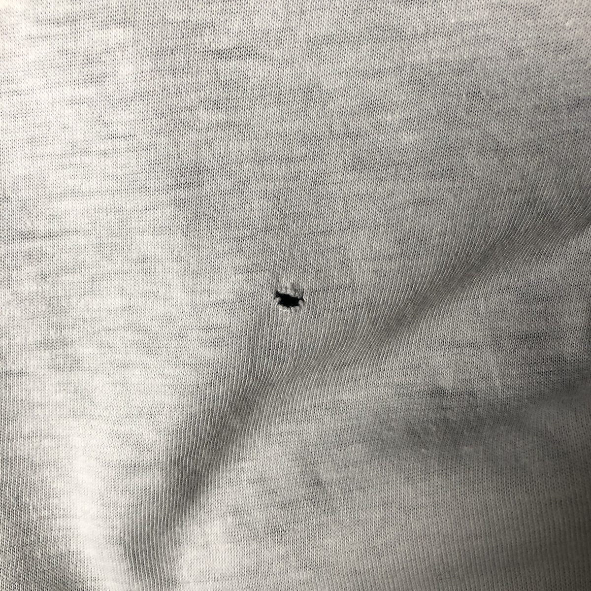 - Stain on front, back and both sleeve ends (inside and out)