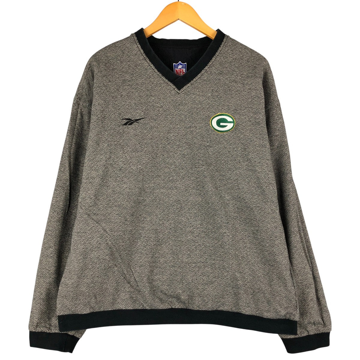 Reebok NFL Green Bay Packers V-neck reversible nylon pullover, men's size L Nylon black type Vintage Second Hand