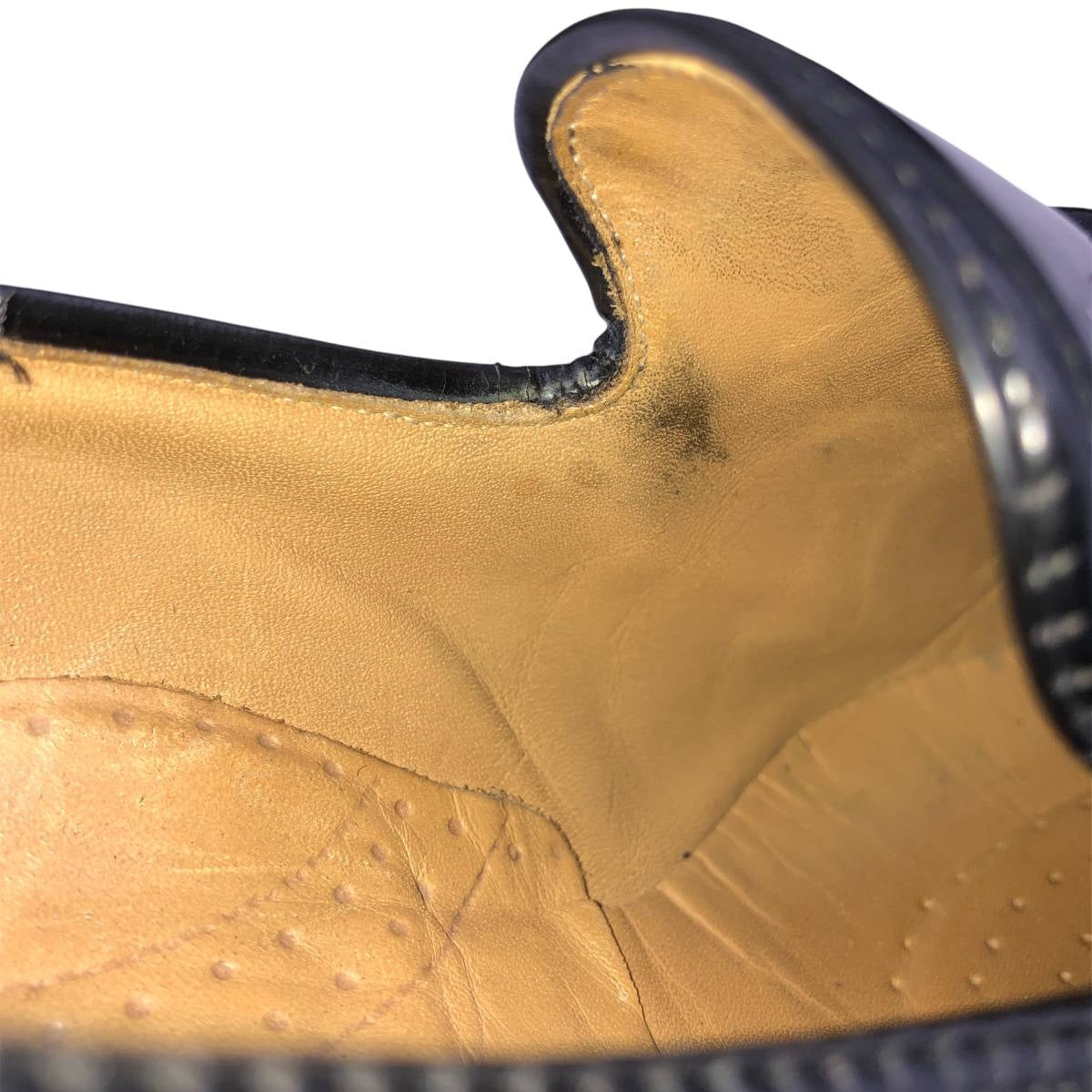 - Stain on the inside of the right foot, near the toes