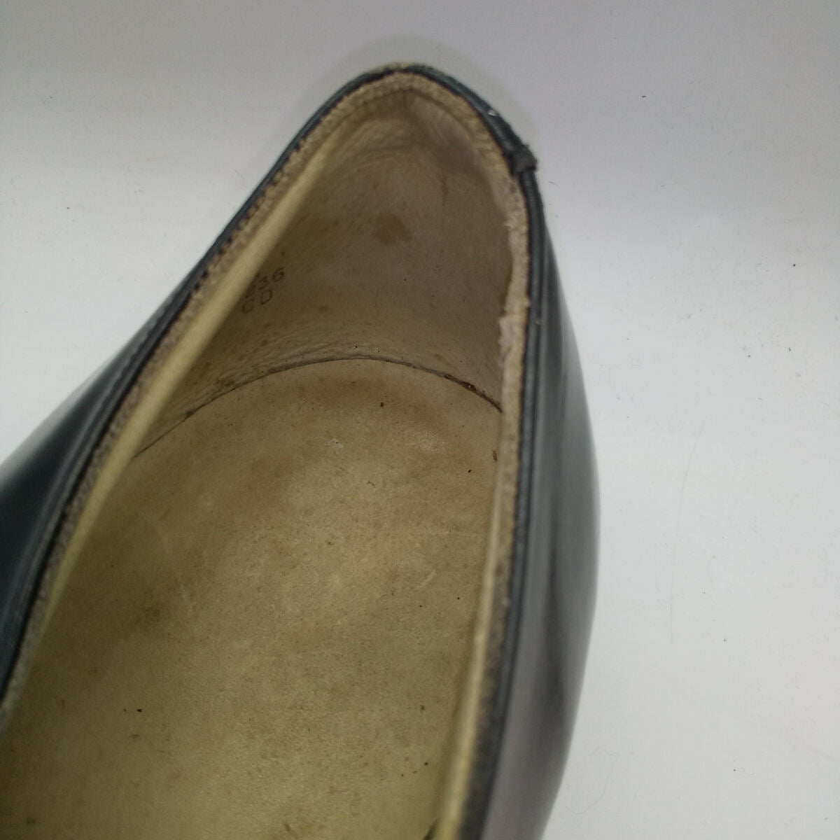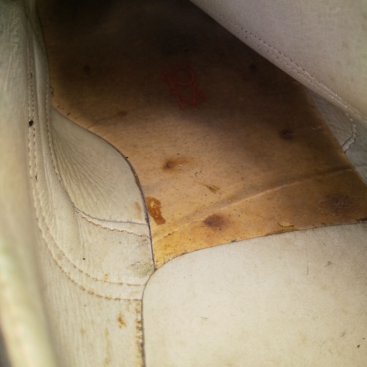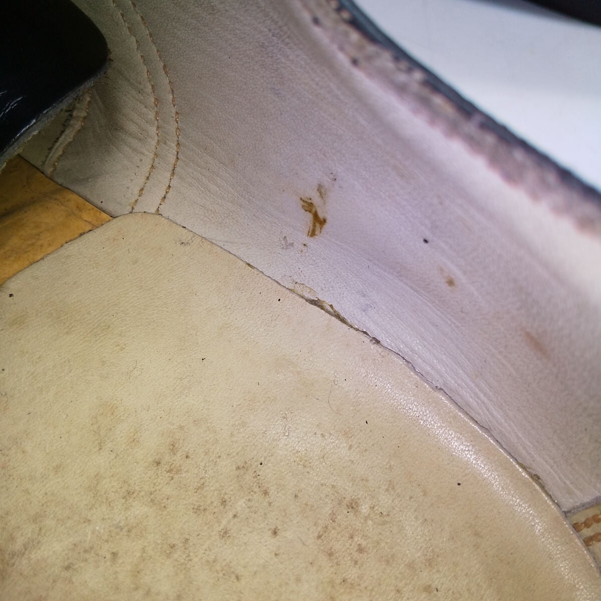 - Middle, right heel, stain.