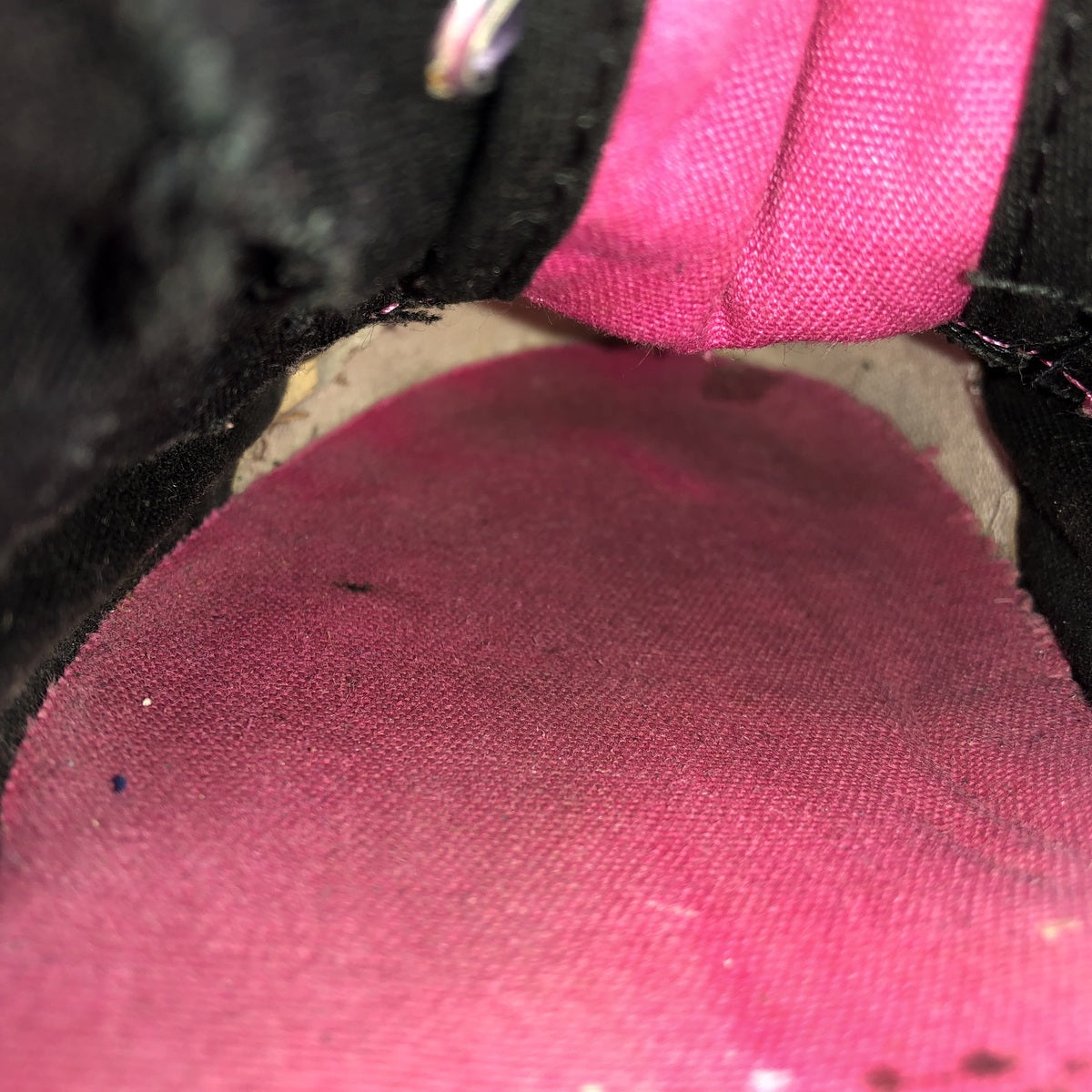 - Stain on left shoe hole