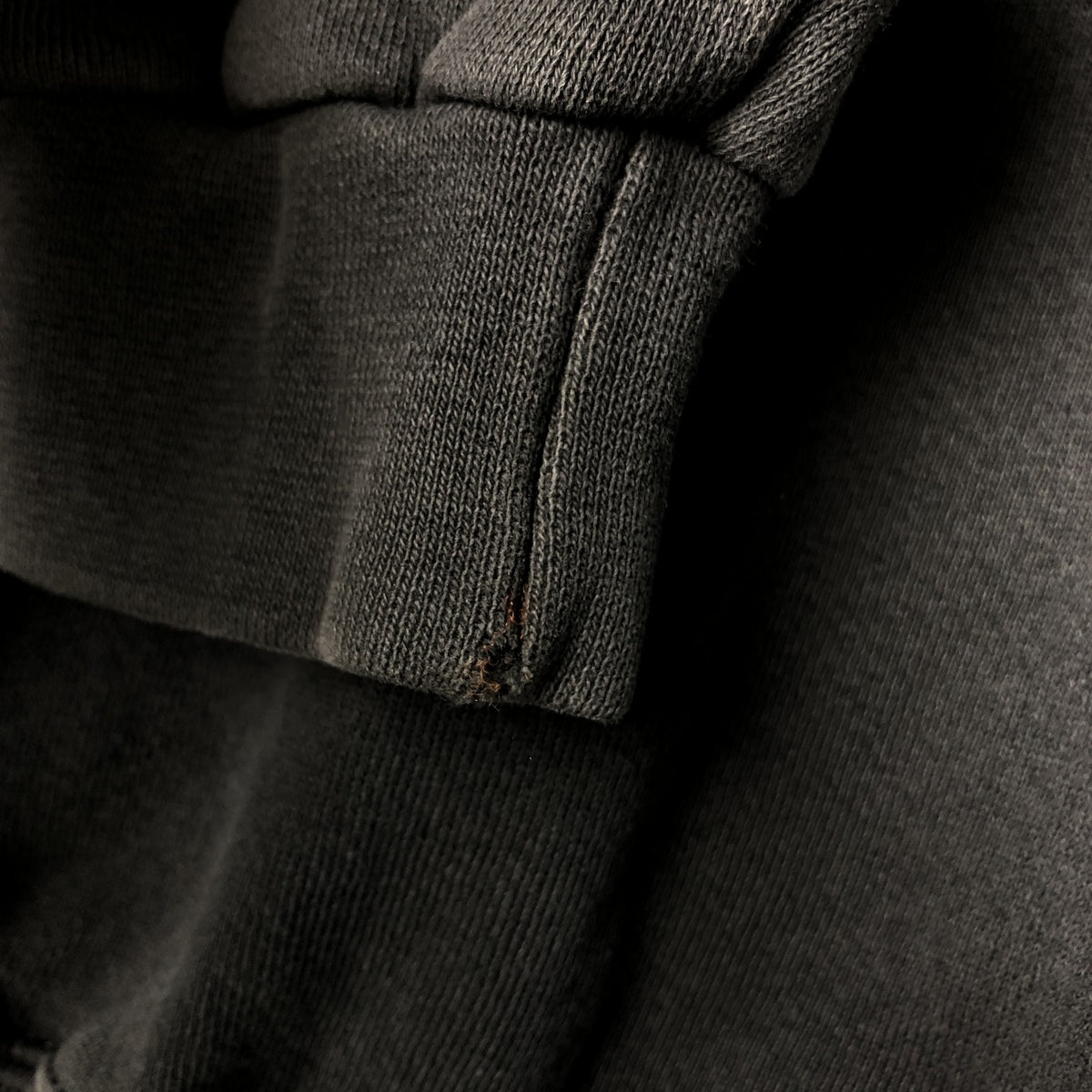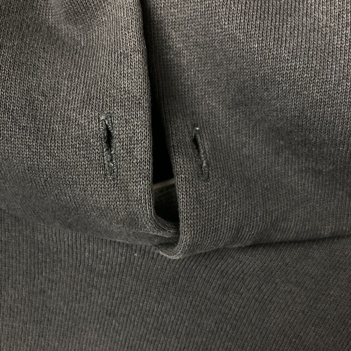 -Back: hood, multiple places on waist, left arm are rubbed, threads are missing from hem