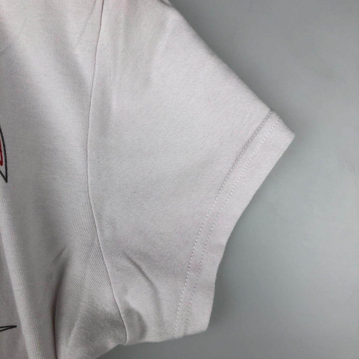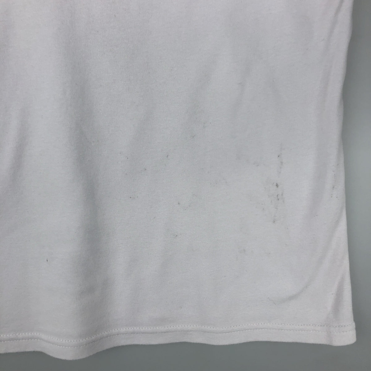 -Stain on back neckline, right arm and right hem. Hole on left shoulder.