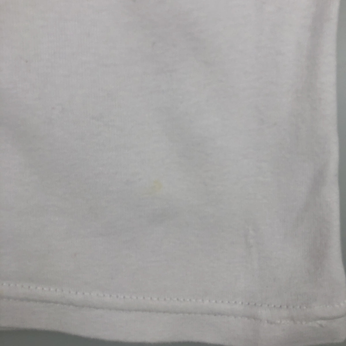 -Stain on the left front of the abdomen. Hole in the abdomen.