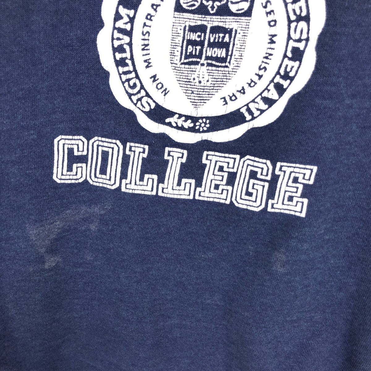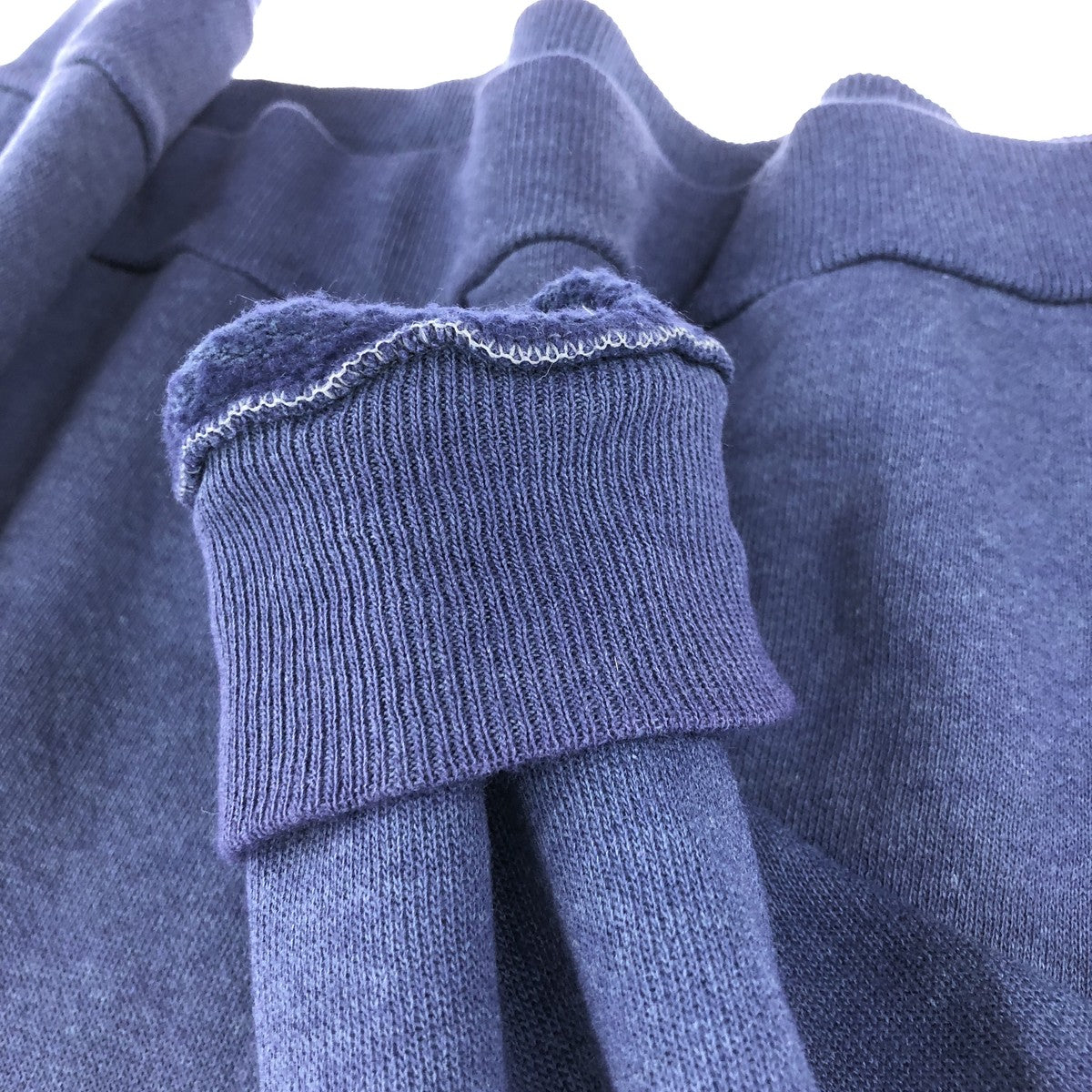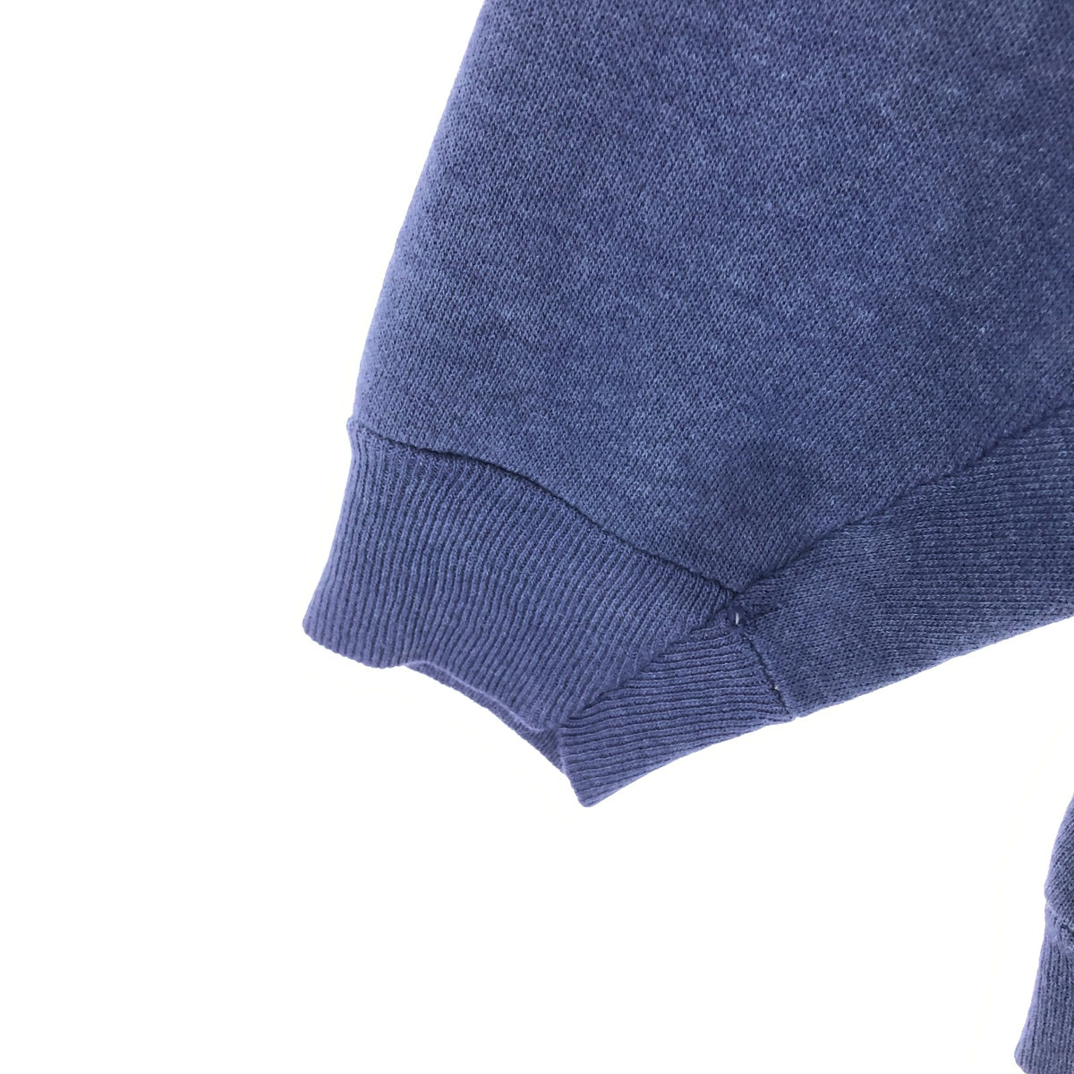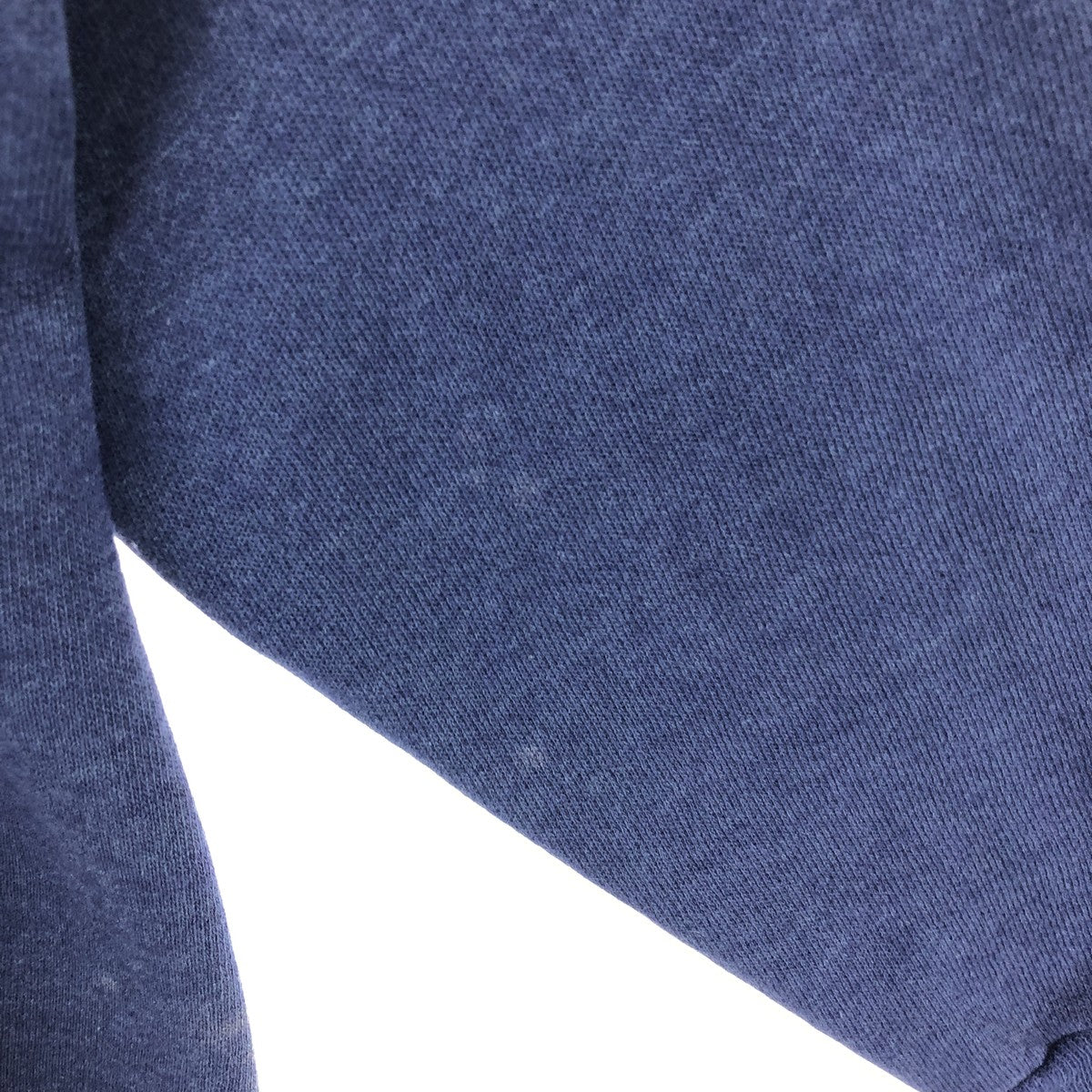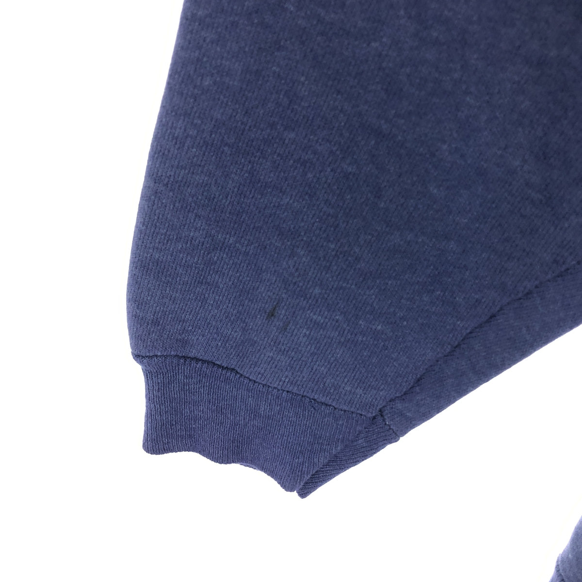 - Small hole in front and neckline, chafing on right sleeve end, stain on abdomen and right sleeve end