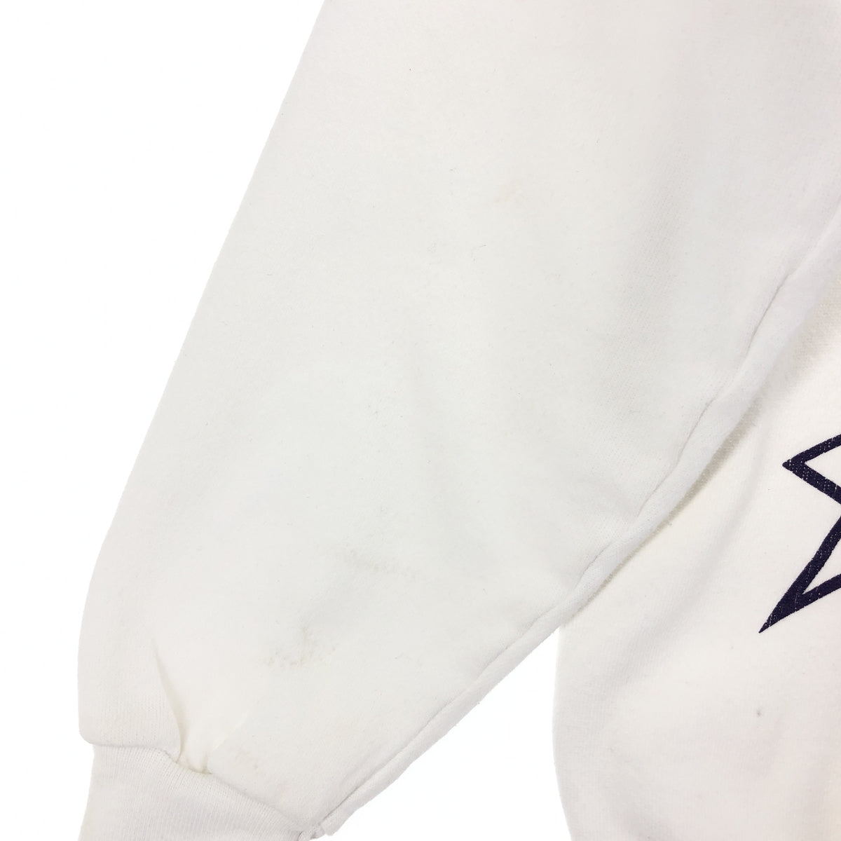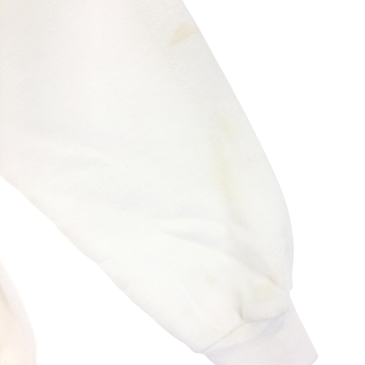 -Stains on front, left shoulder, both arms, hem -Stains on back, both arms -Stains on both sleeves, collar, hem