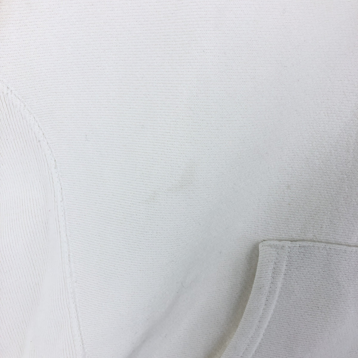 -Stain on front, hood, shoulders, left chest, abdomen, pockets, hem, both arms and both sleeves.