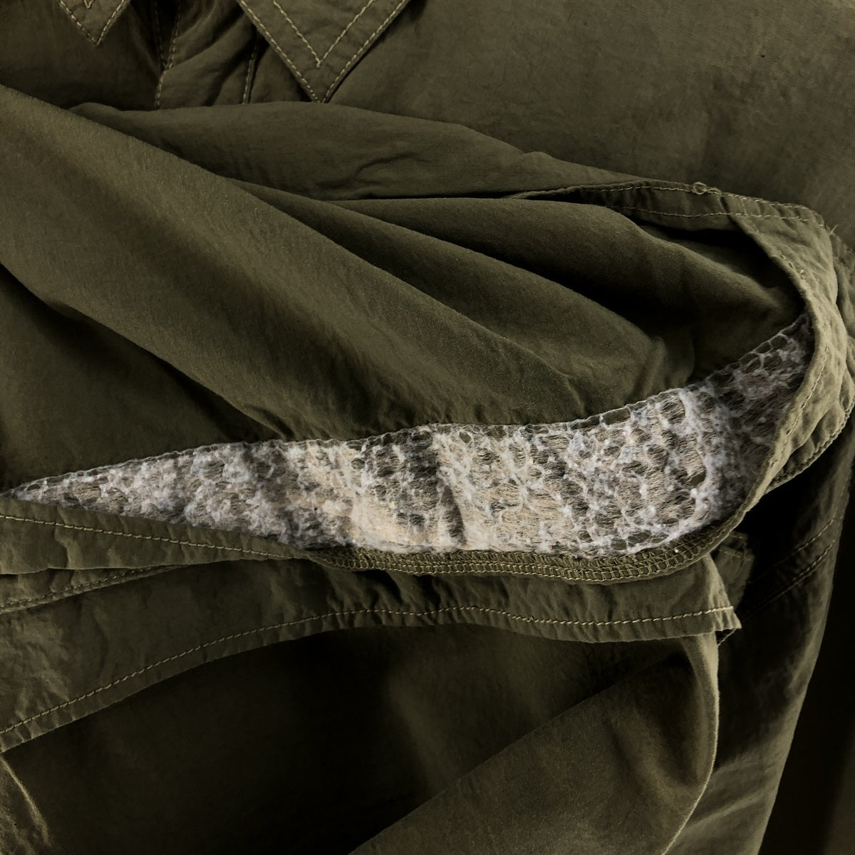 - Stain on front, hem and left sleeve end
