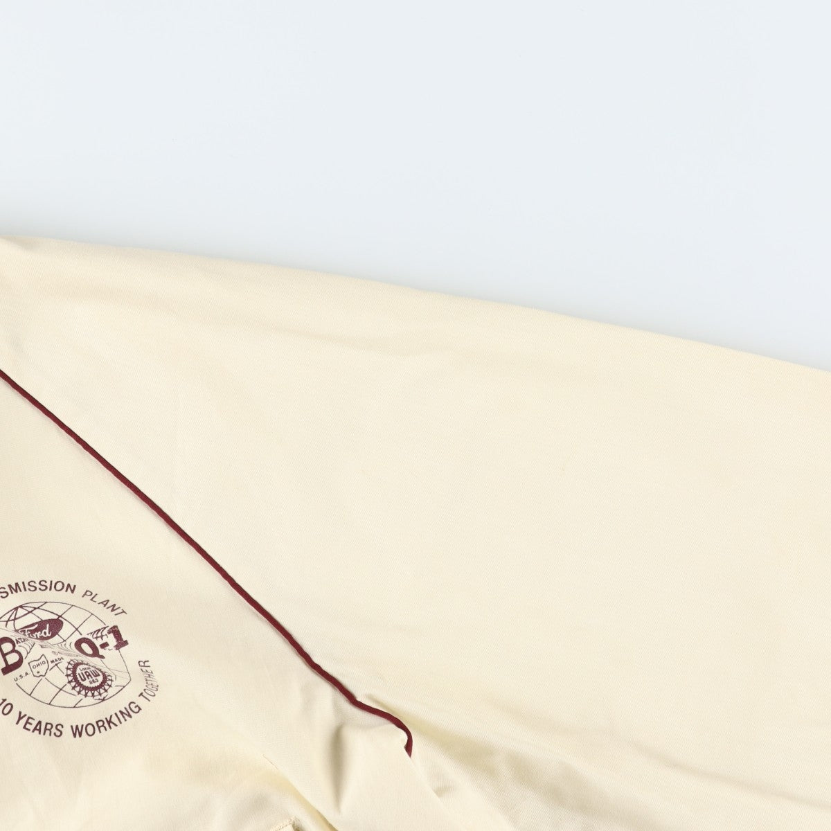 -Stain on the front, left chest, abdomen, both hems, lining of the placket, both sleeves, and both sleeve tips